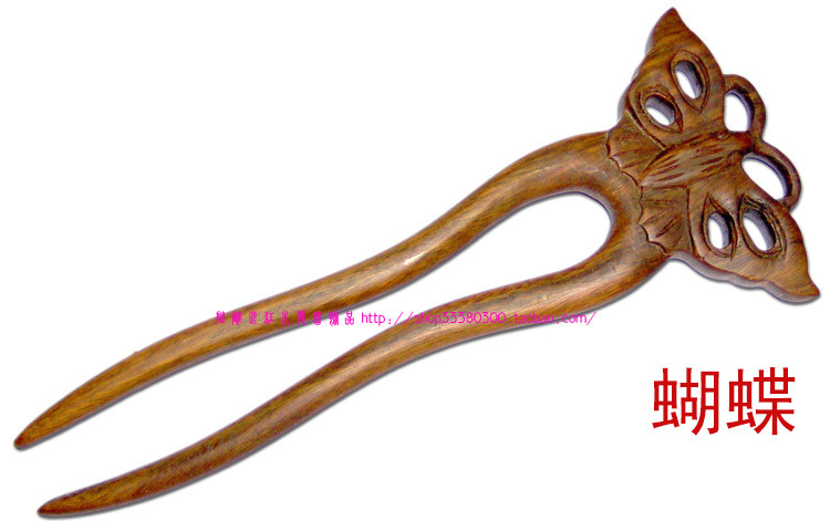 Double-fork green sandalwood black sandalwood hairpin F-111 (L) Double butterfly 100 Styles Butterfly Hairpin Wooden Hairpin U Type