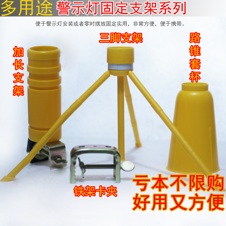 Warning light bracket extended fixed tripod iron frame card clip road cone warning light installation accessories set cup tripod