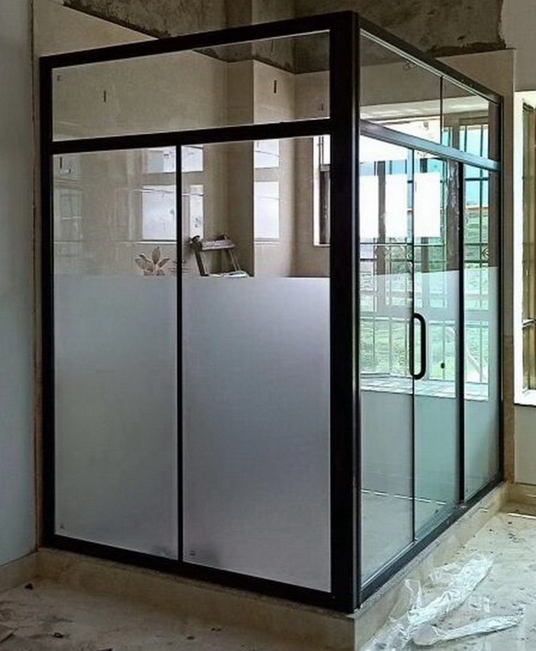 Simple shower room moving door Dressing Room Separator Flush room tempered room tempered glass bathroom Screen square L bath Ramen