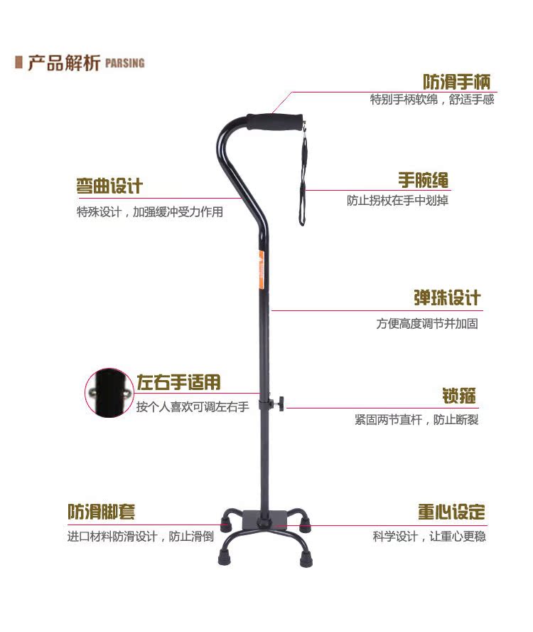 Luxury aluminum alloy old man's walking stick four-leground walking stick with a walking aid and a question mark inflecting cane with adjustable height