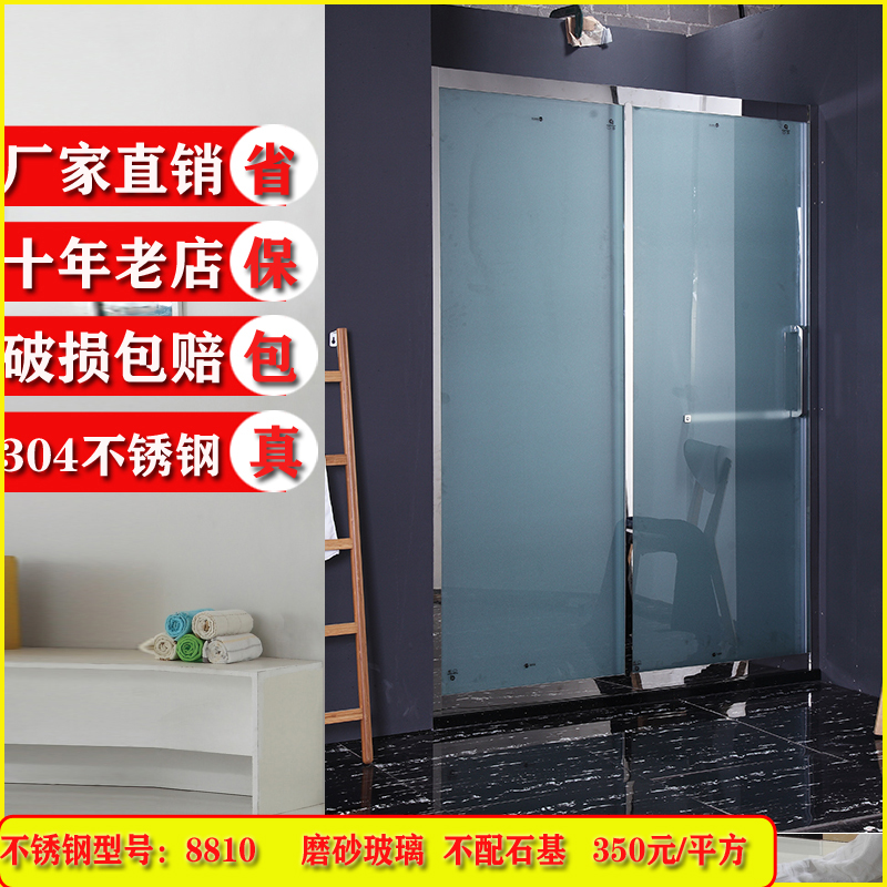 Powder room A shape shower room dry and wet separation partition Tempered glass bathroom toilet artifact household sliding door