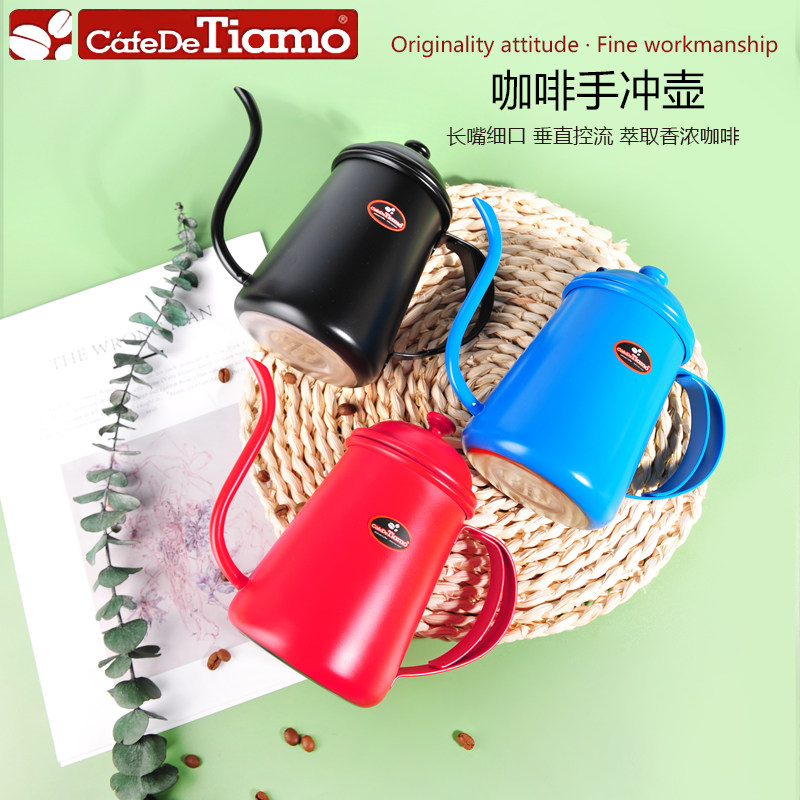 Tiamo Drip Type Fine Mouth Coffee Maker Dazzling Stainless Steel Hand Flush Pot Coffee Maker HA1554 700ml