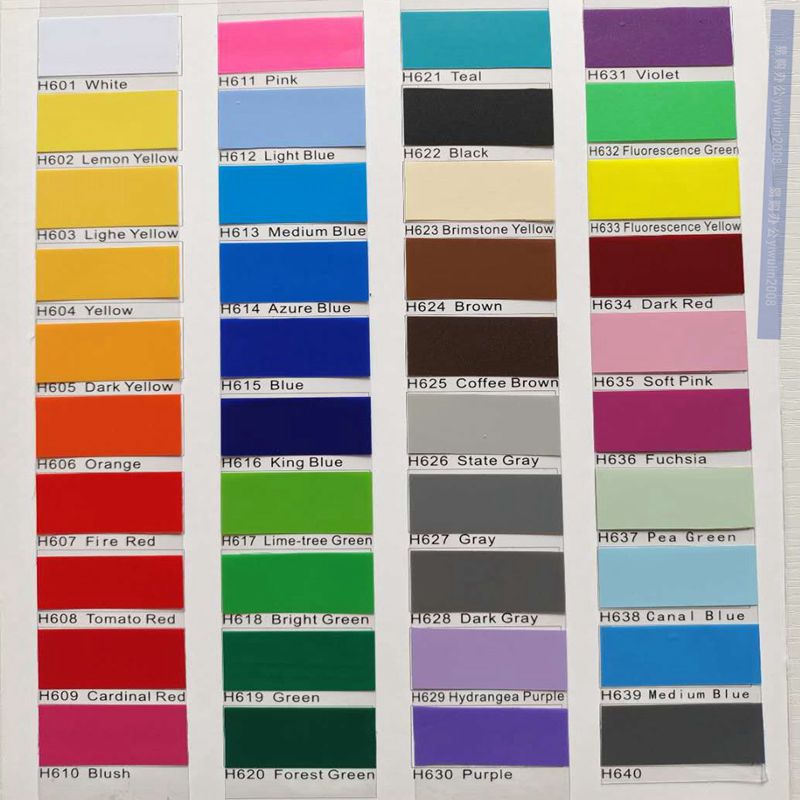 White 601 black 622 red 608 yellow 604 blue 615 grey 627 purple 630 coffee color 625 green 61940 color reference color card