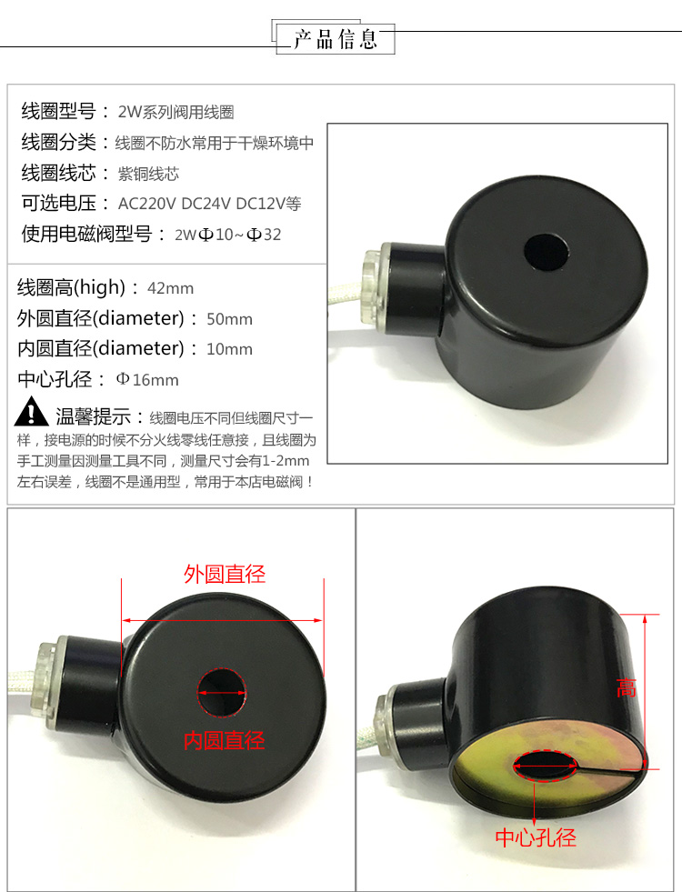 2W series solenoid valve coil All copper coil 4 points 6 points 1 inch 1 2 inch universal AC220VDC24V, etc