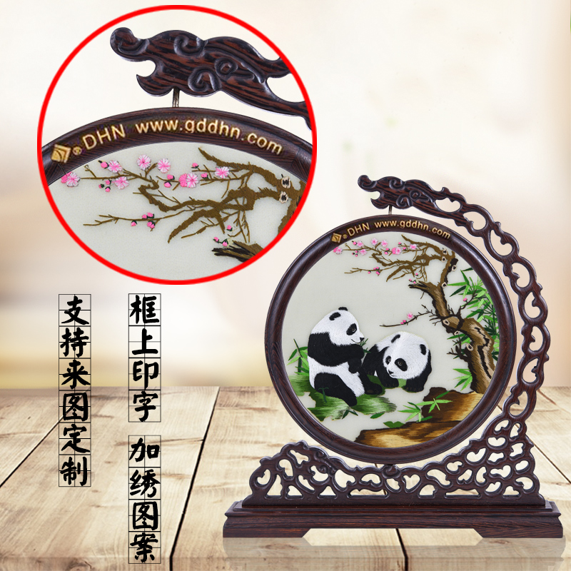 Chinese characteristics gifts to foreigners handmade Su embroidery double-sided embroidery screen Bogu frame Panda ornaments Su Embroidery finished products