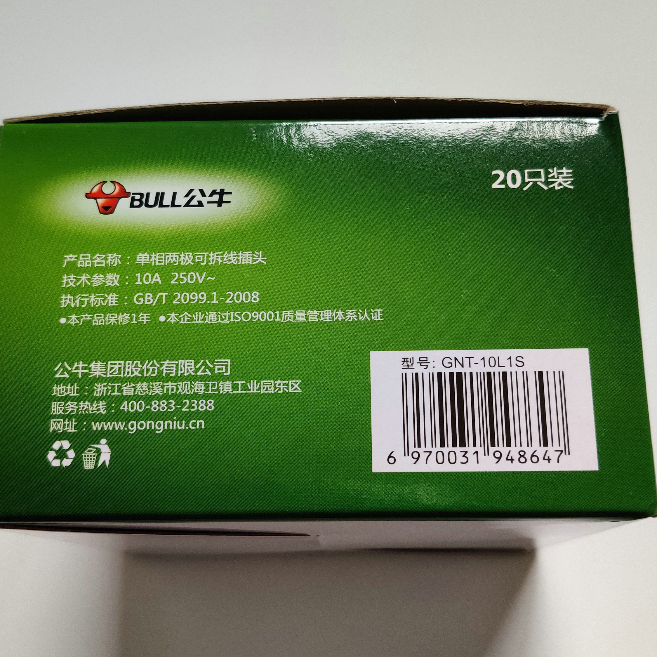Bull plug 2-foot two-plug 2-pin 2-pin power detachable wiring 10a white GNT-10L1