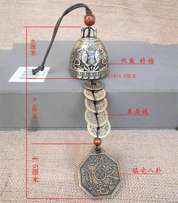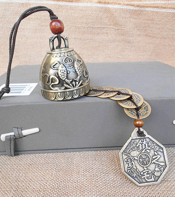 Double Fish Five Imperiale Money Tai Chi Eight Divination Mirror Bronze Bell Pendant Bronze Wind Bells Hanging Decoration Five Yellowii Black Car Pendant