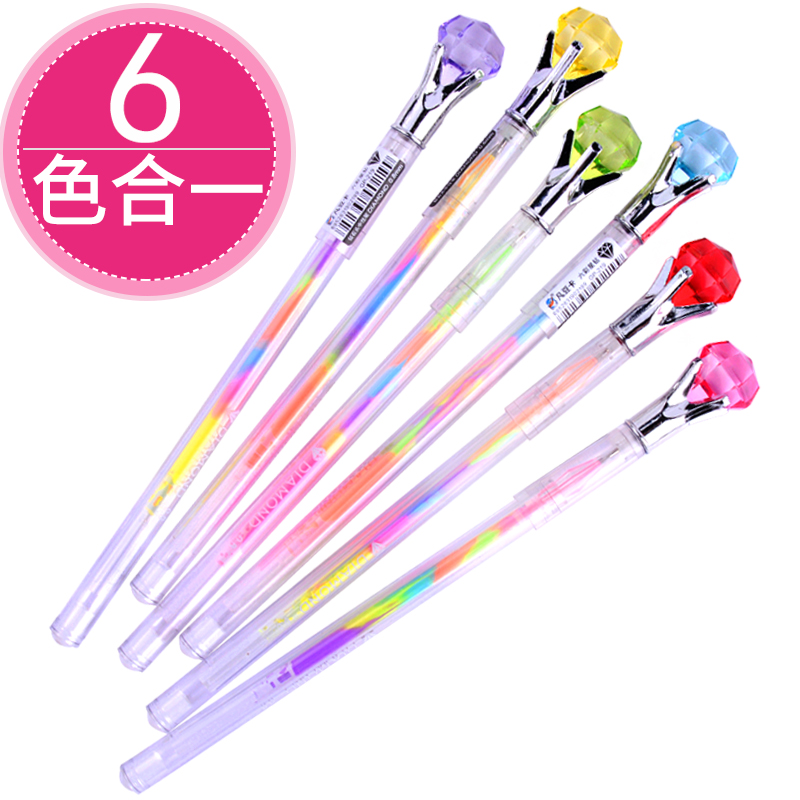 Diamond color pen Six-in-one gradient color watercolor pen Color change pen Creative pastel fluorescent marker pen for students