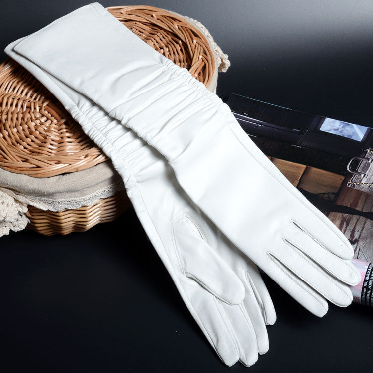 Leather long version gloves long arm sleeves women's autumn and winter Korean version white extended gloves bride sheepskin gloves hand sleeves women