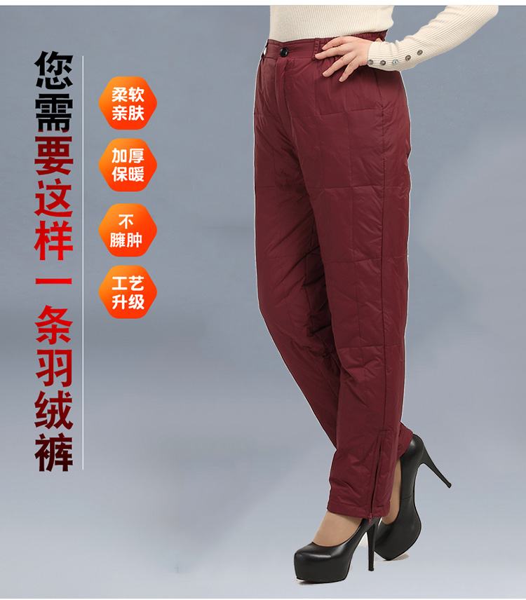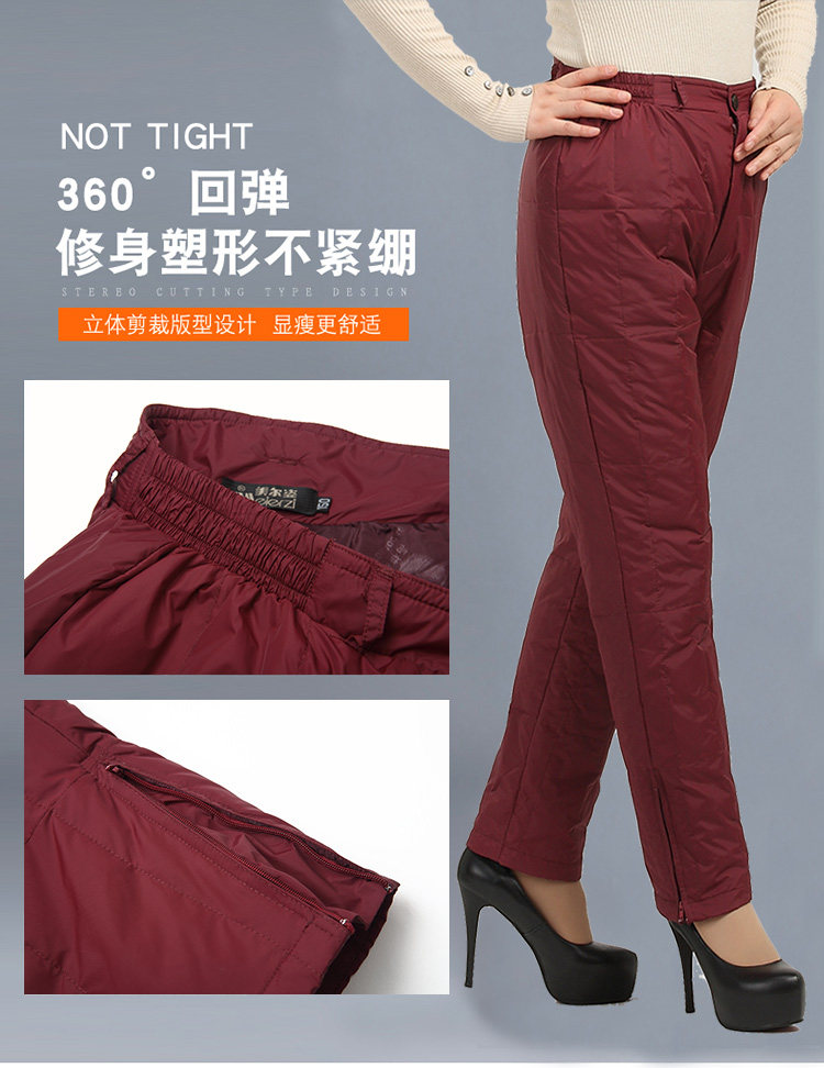 Thickened high-waisted middle-aged and elderly down pants ladies plus fat large size inside and outside wear loose warm elastic down cotton pants winter