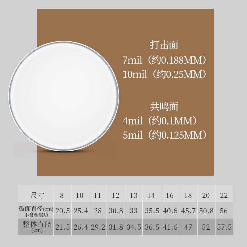 Shin treasure frame drum drum skin jazz drum snare drum skin 8 10 11 12 13 14 16 inch hitting surface 7mil
