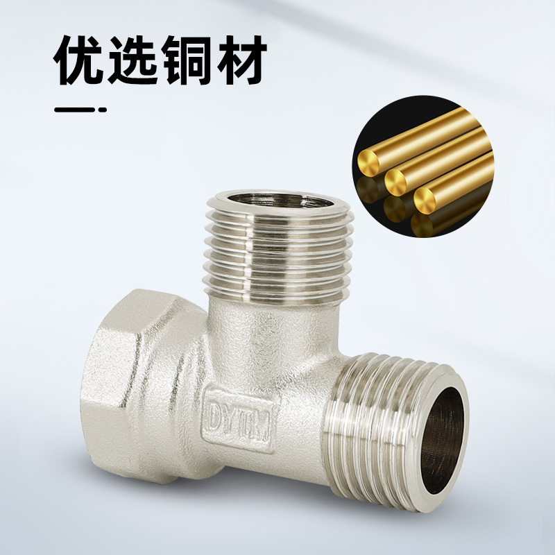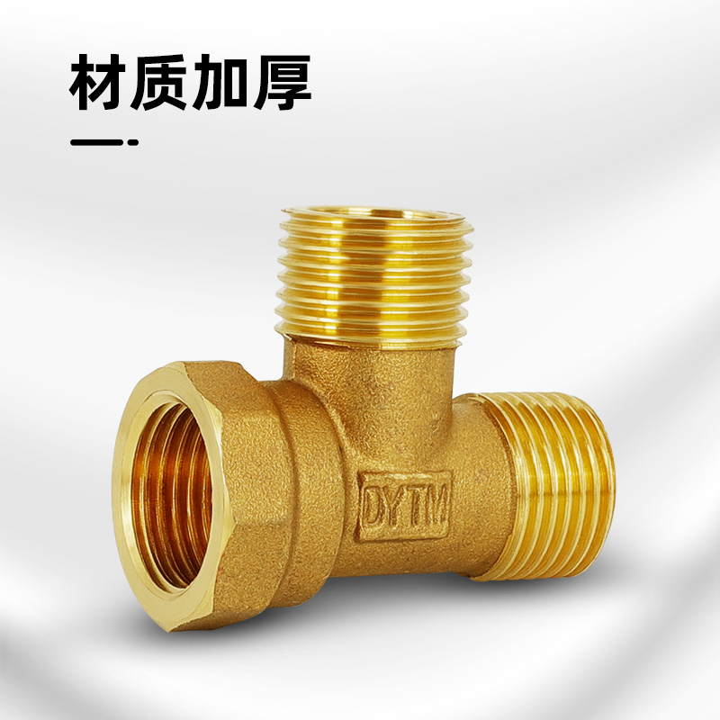 All copper thickened three-way joint water heater floor heating pipe 4 minutes 6 minutes 1 inch equal diameter inner and outer wire water pipe joint accessories