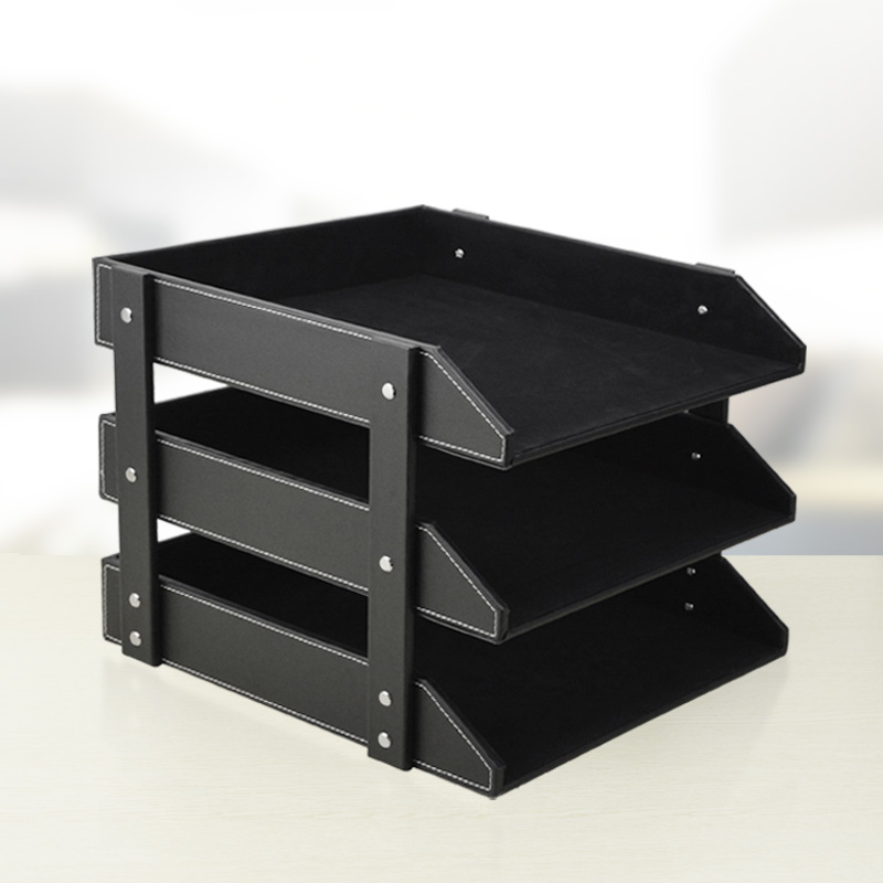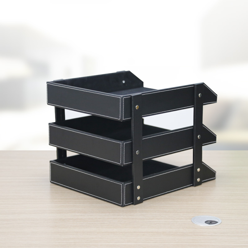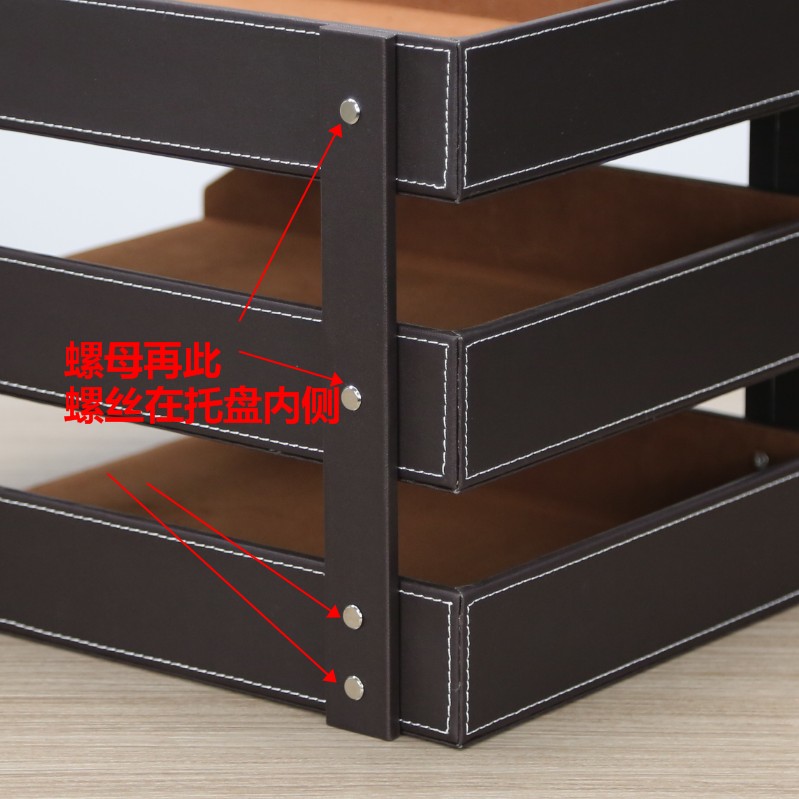 Leather file data rack tray three layer desktop storage layer rack high-end business fashion office supplies Special