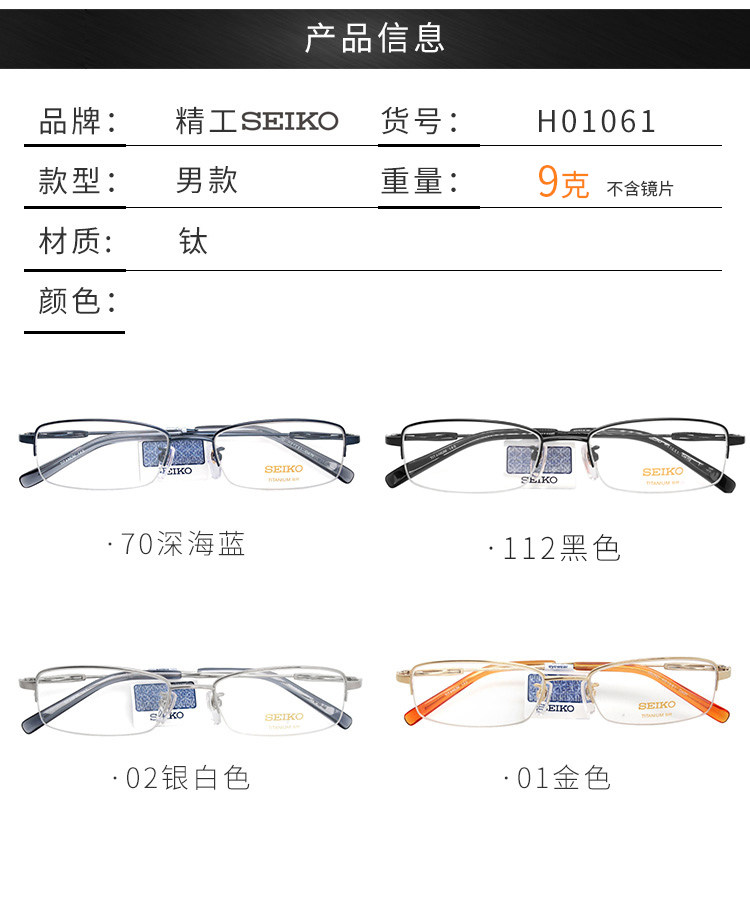Seiko glasses frame ultra-light titanium half frame male net red female tide can be equipped with lenses myopia anti-blue light finished product H01061