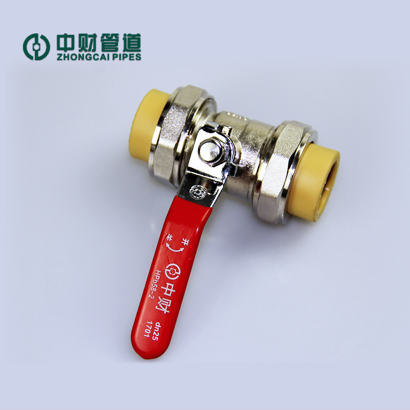 China Finance Pipeline zhongcai curry color PPR to water pipe fittings Double live copper ball valve dn25