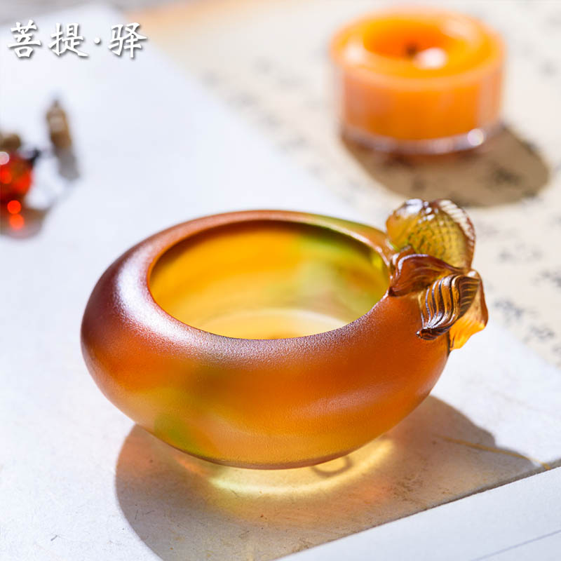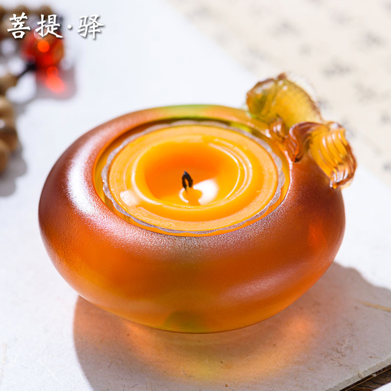 Seven - palm glass amber candlestick for the lamp stand of the Old Fa glass butter lamp for the lamp candlestick