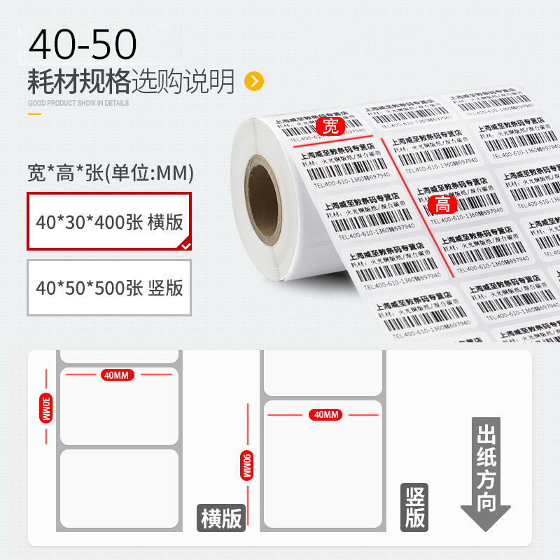 Huoguang Ai Li coated Self-adhesive label Barcode copy paper 100~102mm*40 50 60 70 80mm single row