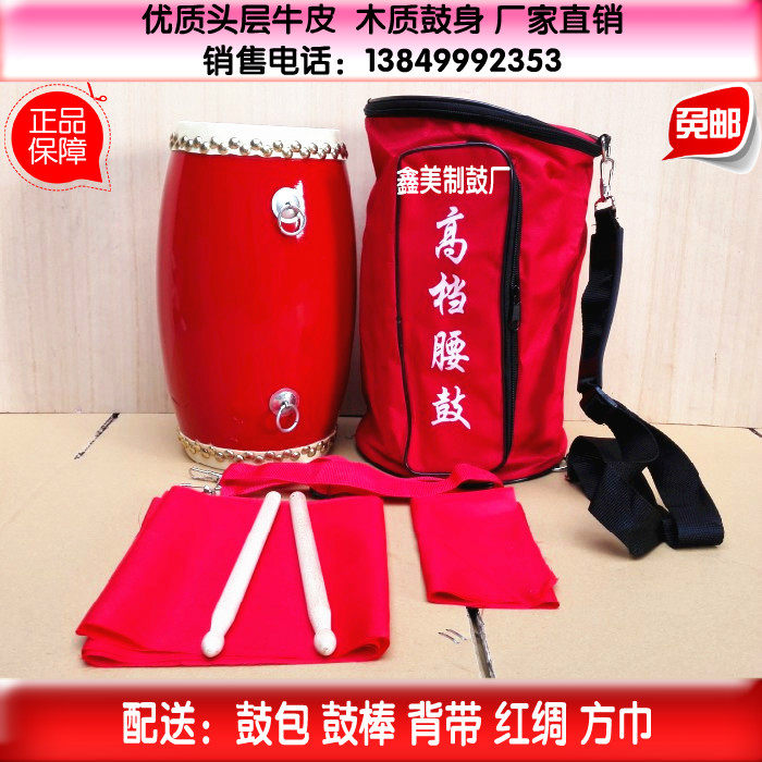 15cm Waist Drum Dragon Drum Head Layer Cow Leather Drum Woody Adult Waist Drum Anse Waist Drum Square Dance Shoots Song Drum