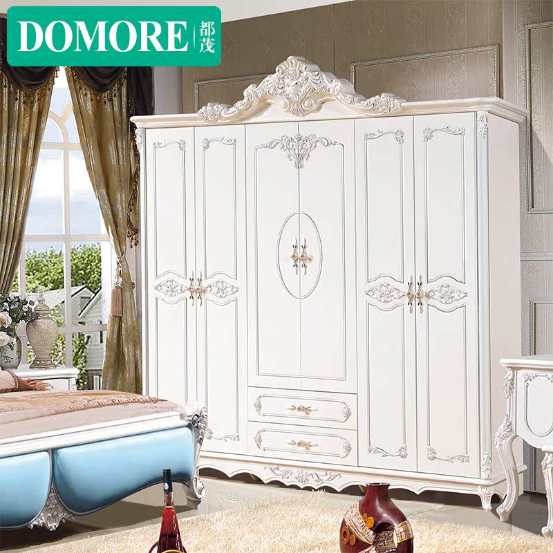 Dumao furniture European-style American-style French wardrobe solid wood four-five-six door silver-painted wardrobe pastoral wardrobe large wardrobe
