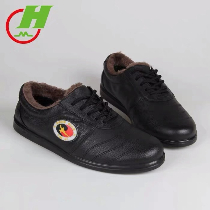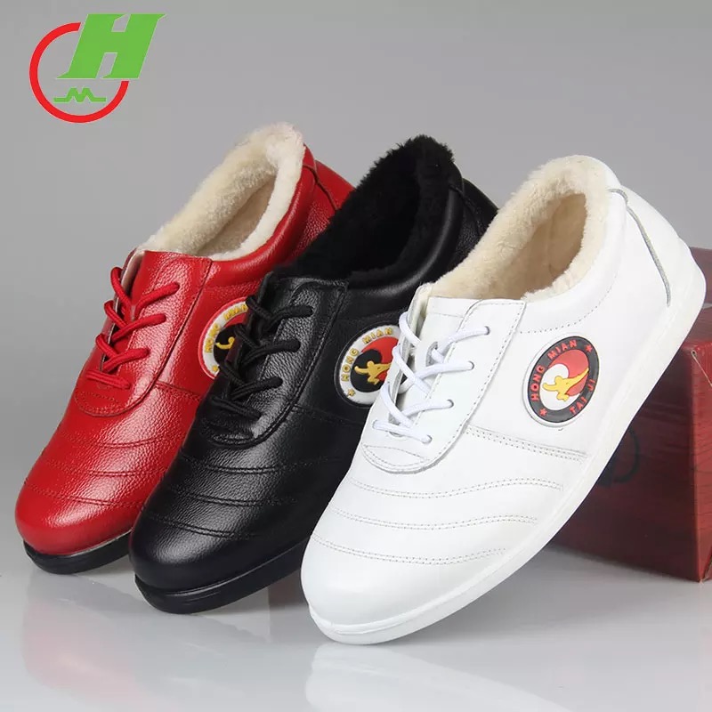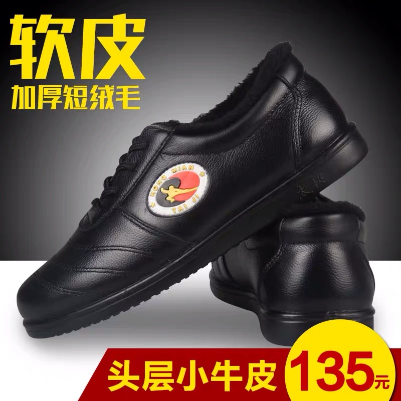Red cotton winter Tai Chi shoes plus velvet warm cotton shoes women's real soft leather than tendon bottom soft martial arts training shoes for men