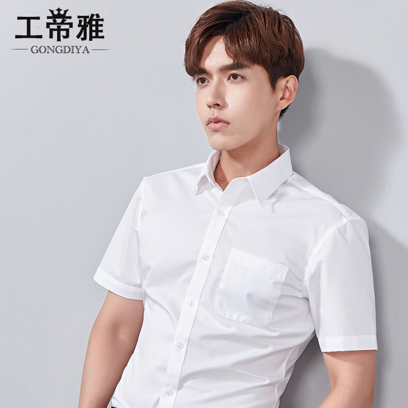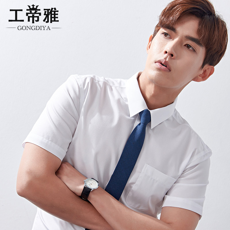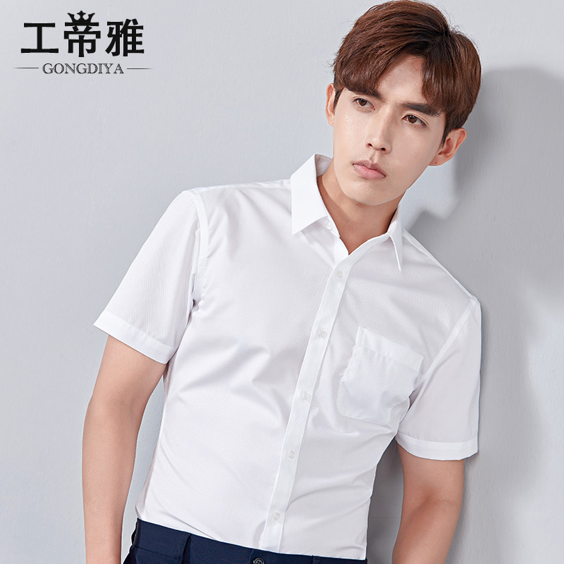 Gongdiya summer men's white short-sleeved shirt business professional wear dress interview work non-ironing youth shirt