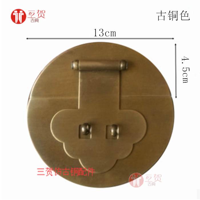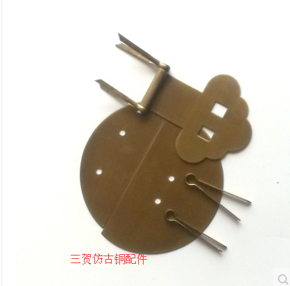 Chinese antique copper accessories Camphor wood box Official suitcase box button box Jewelry box with old-fashioned button handle buckle lock