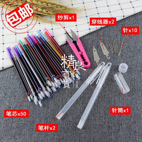Cross-stitch water-soluble refill dotted drawing point 0 7 thick head 0 5 thin head 50 mixed color water elimination pens