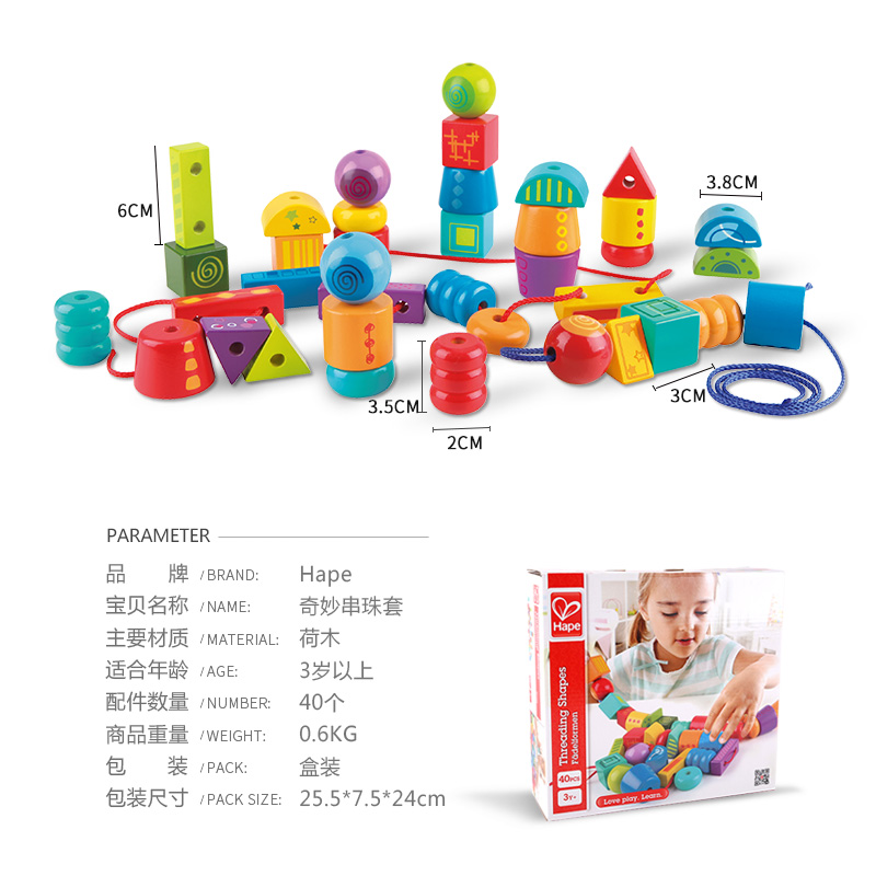 Hape Children's beaded set Baby puzzle wear string beads Building block toy 1-2-3 years old boy girl wear rope line