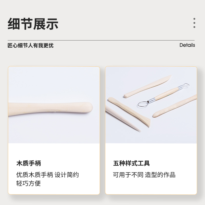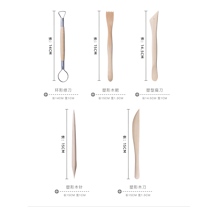 Creation space five-piece set of wooden tools pottery kneading clay modeling tools children's students handmade
