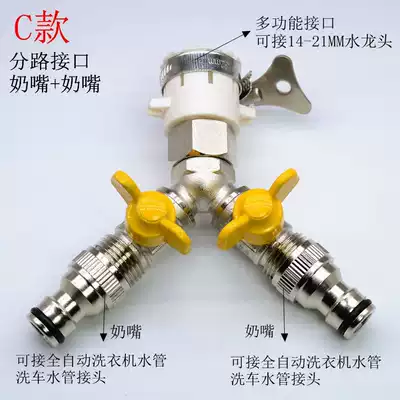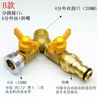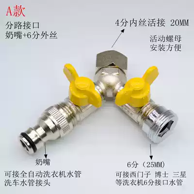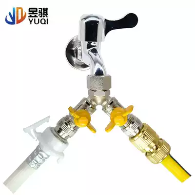 Yuqi washing machine faucet one point two full copper connector Car wash washing machine water pipe three-way shunt with switch