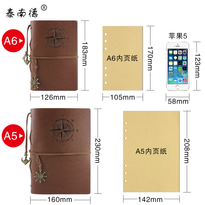Japanese and Korean stationery notebook creative travel diary retro small notepad pirate ship A6 loose-leaf book