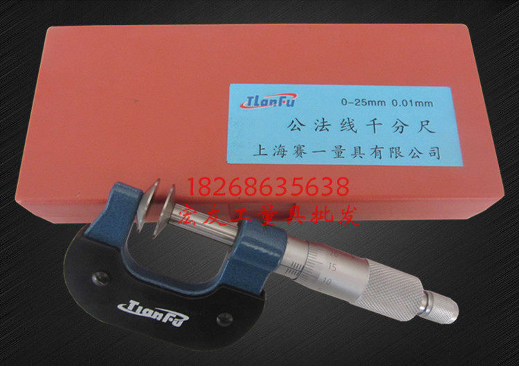 Shanghai Saitianfu brand mechanical public normal line micrometer 0-25mm disc head paper gear measurement micrometer