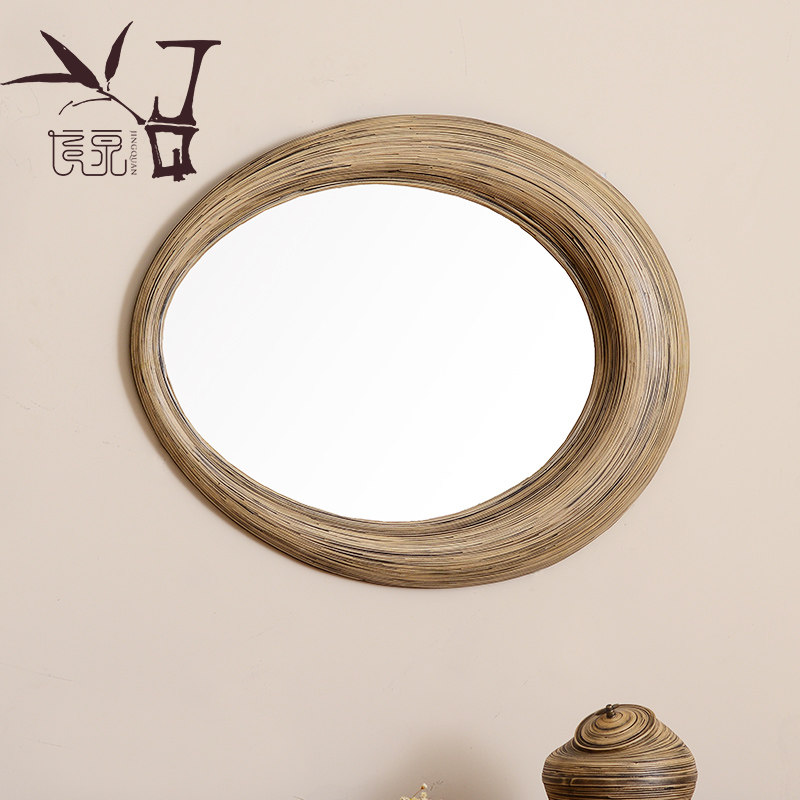 Jingquan Thai-style minimalist bamboo art background wall decorative mirror clothing store home bathroom dressing table hanging mirror