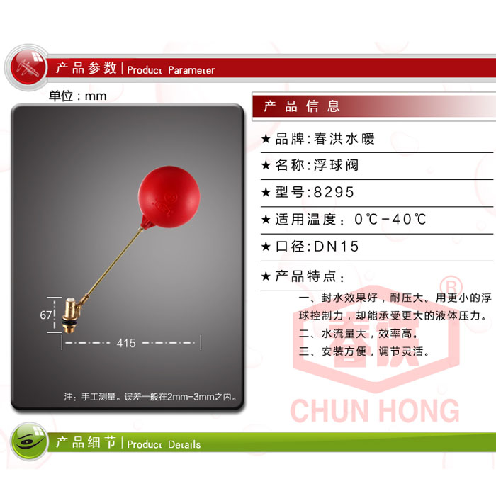 Chunhong brand float valve red plastic float valve water tank water tower special float valve inlet valve switch 4 points 8295
