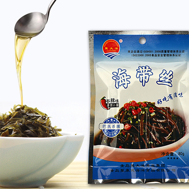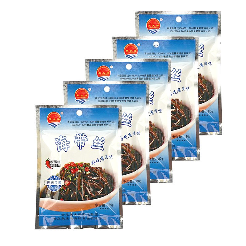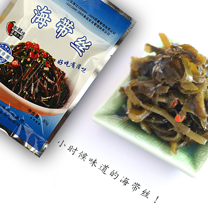 Poly ocean kelp shreds Qingdao specialty ready-to-eat spicy pouches 80 90 nostalgic snacks seaweed under rice crony 5 bags