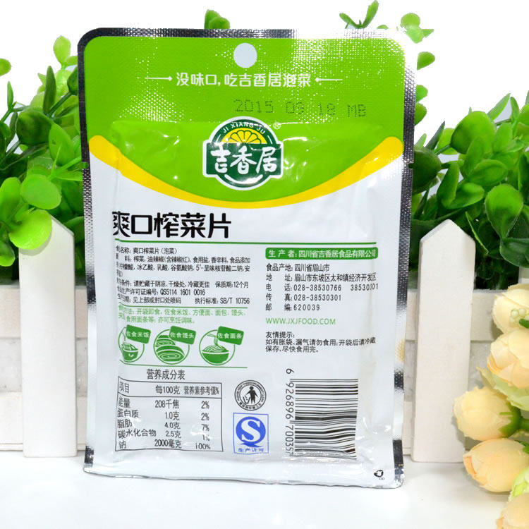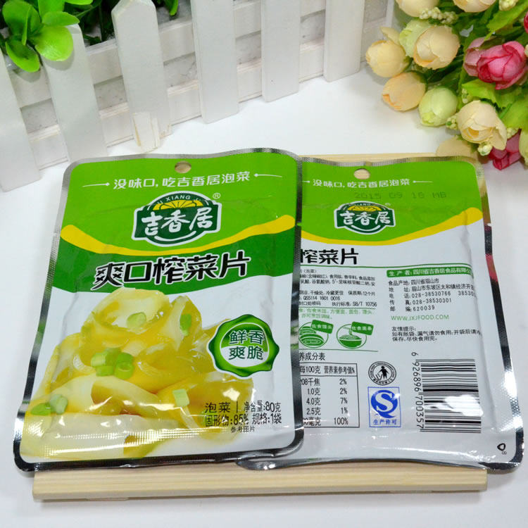 10 bags of fresh and fragrant Sichuan specialty pickles Jixiangju refreshing mustard slices 80g appetizers and side dishes