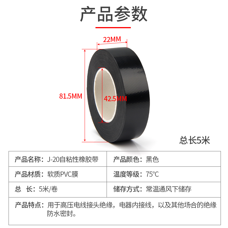 Self-adhesive rubber tape J-20 insulating electrical tape elastic tape high voltage waterproof electrical flame retardant electrical tape