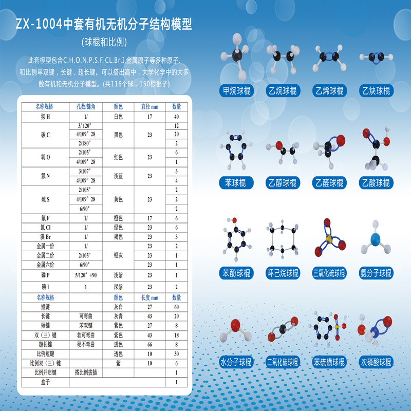 Molecular Chemistry Experimental Equipment ZX-1004 Chemical Molecular Structure Model Ball Stick Proportional Model Organic Molecules