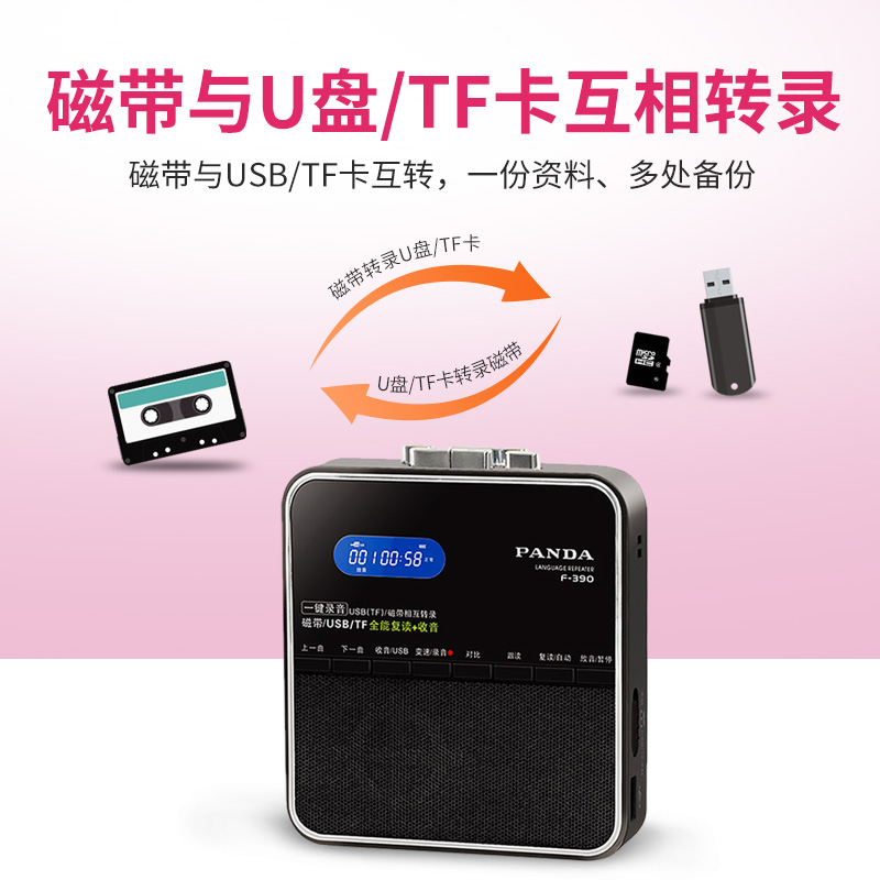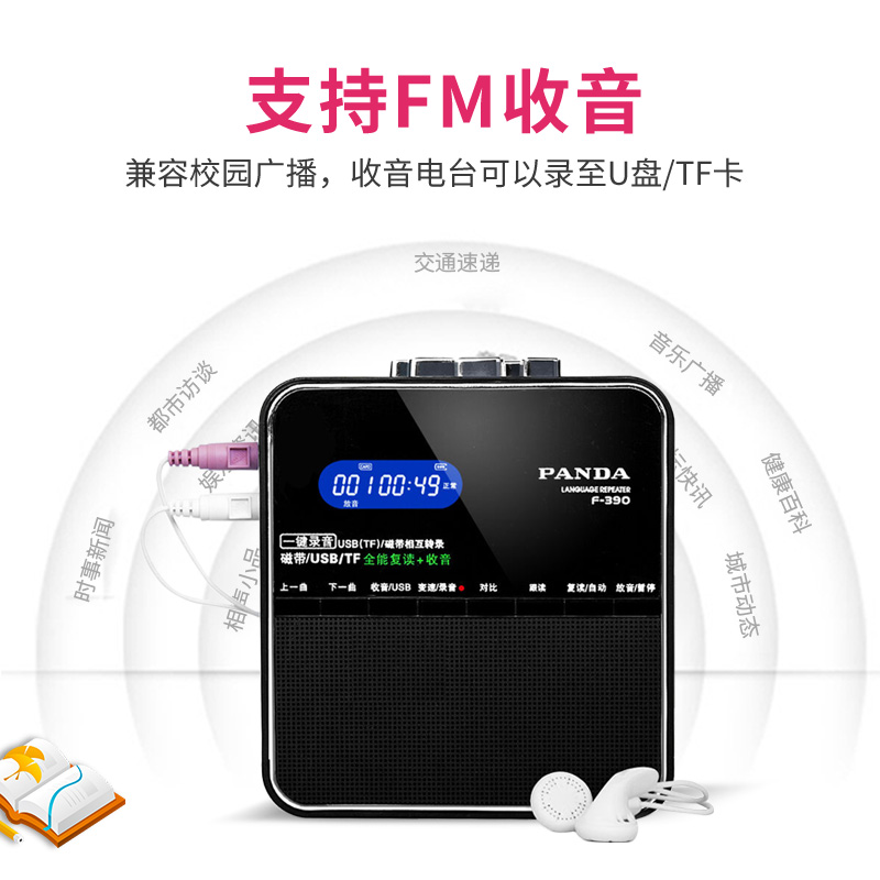 Panda F390 repeater tape machine English learning plug-in machine Pen drive mp3 Children's primary school students Junior high school students plug-in card recording Portable audio tape synchronization with the reading walkman textbook