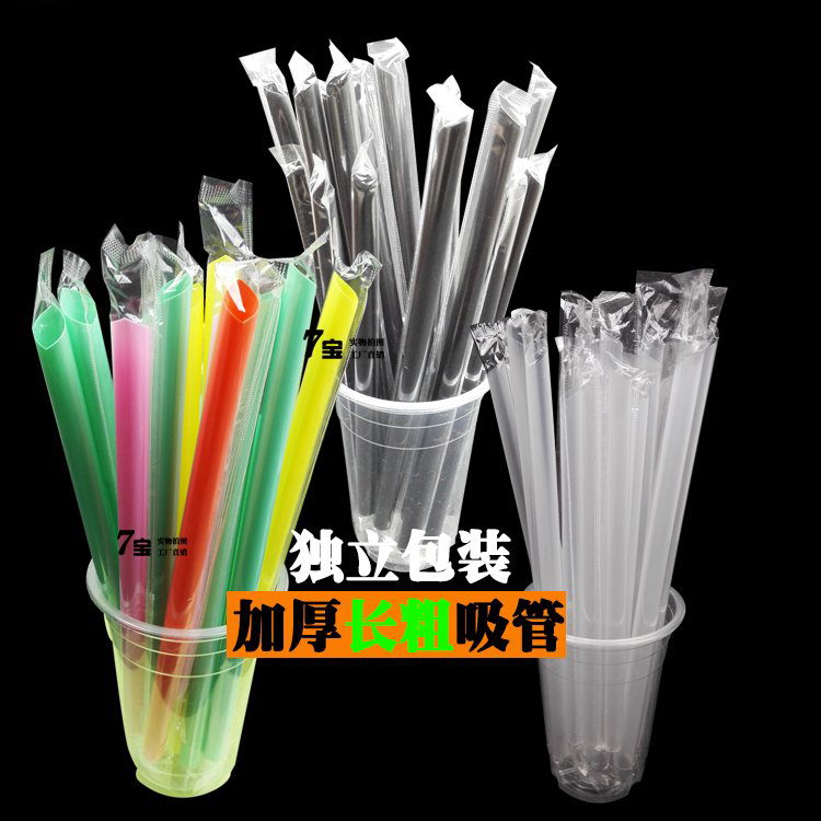 Disposable thick straw pearl single long thick color black independent packaging coconut fruit juice commercial milk tea soy milk cup straw
