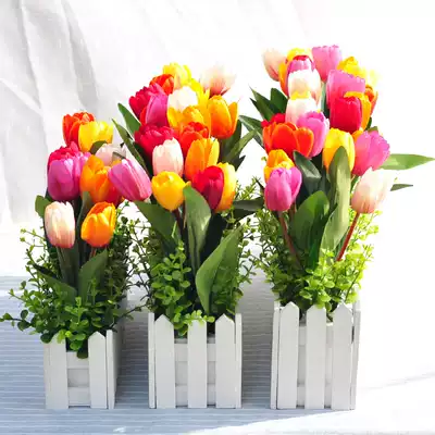 Tulip simulation flower set wooden fence floral living room bedroom home fake flower decoration flower silk flower decoration potted