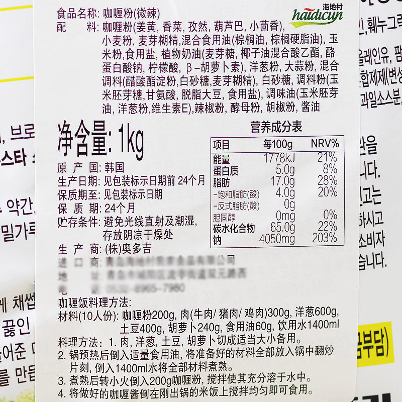 South Korea imported tumbler original curry powder medium spicy curry seasoning instant curry rice seasoning 1kg