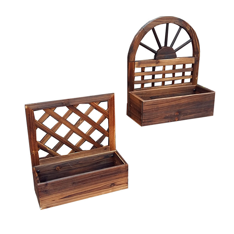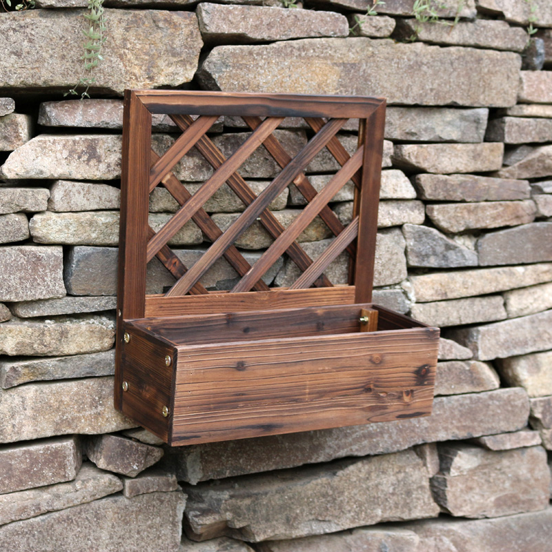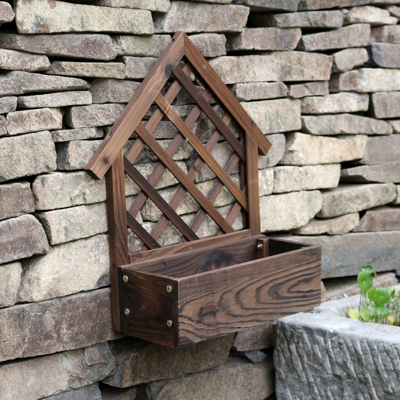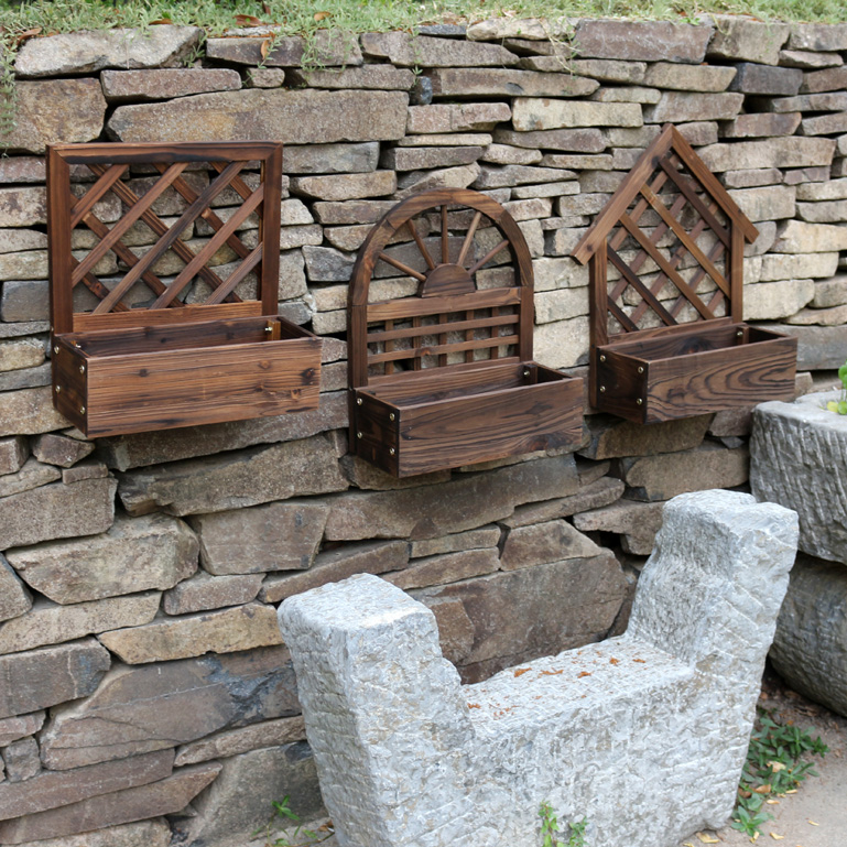Carbonized anti-corrosion wall hanging solid wood flower pots wood wall hanging flower stand wall decoration flower basket planting box personality creative type