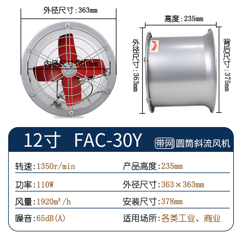 Jinantelope Industrial Exhaust Fan Powerful 12 - inch Cylindrical Fan Wall Exhaust Fan FAC-30Y Belt Mesh