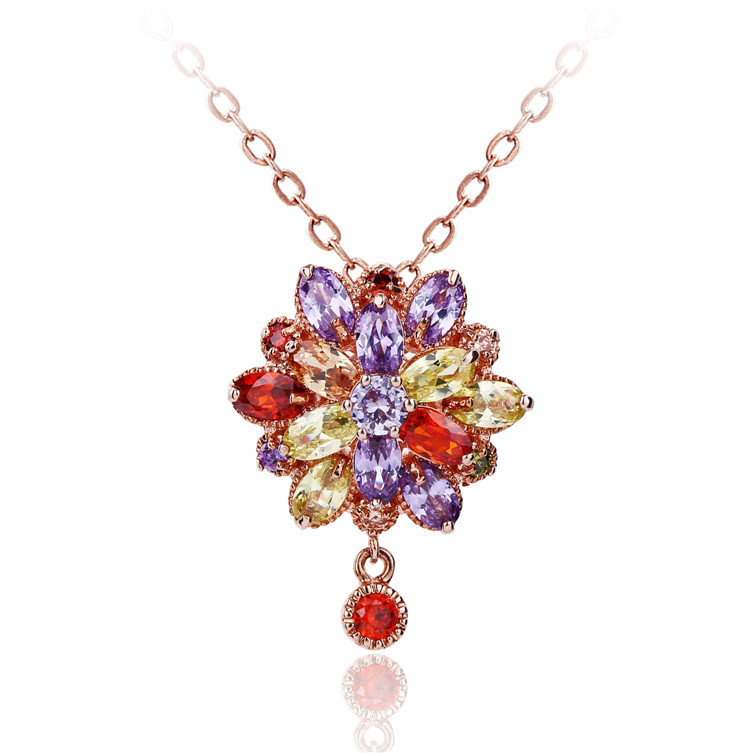 Mona Lisa Colorful-AAA Zircon Fashion Cute Korean Exaggerated Bridal Flower Necklace
