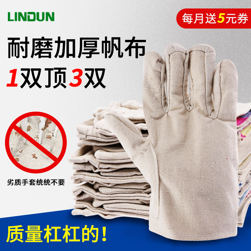 Canvas gloves thicken double layer wear-resistant welding welder handling machinery work site handling and protection manufacturers