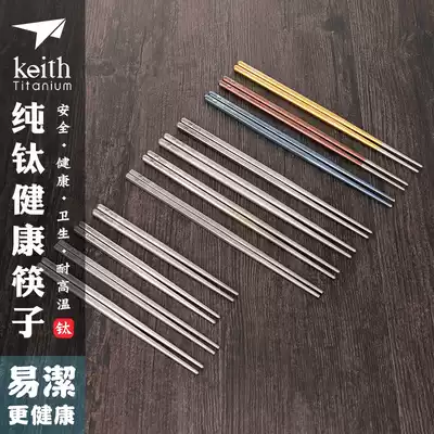 Keith Kaisi pure titanium chopsticks Non-slip antibacterial high temperature resistant healthy household tableware Outdoor portable titanium chopsticks