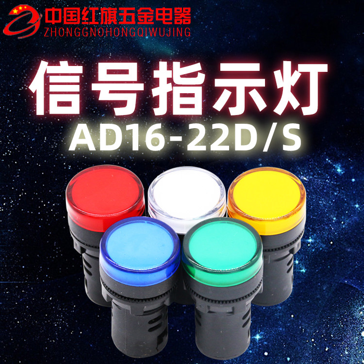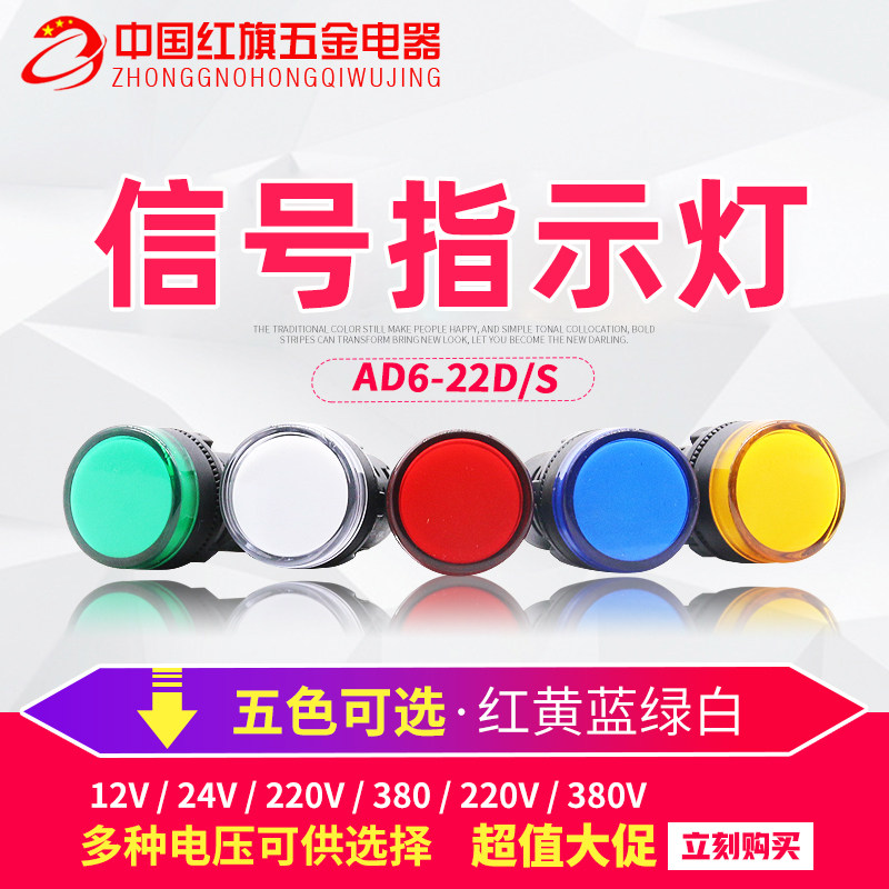 Zhuangyin indicator light AD16-22D S LED power switch button 22 holes 24V220V380V