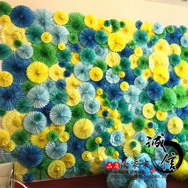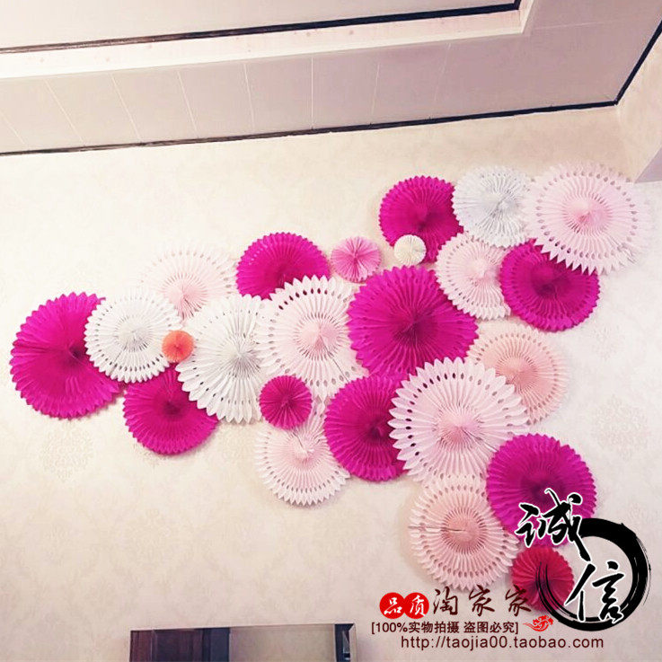 Hollow 25cm paper fan flower ball Wedding festival birthday window decoration color fan shop background decoration hanging decoration