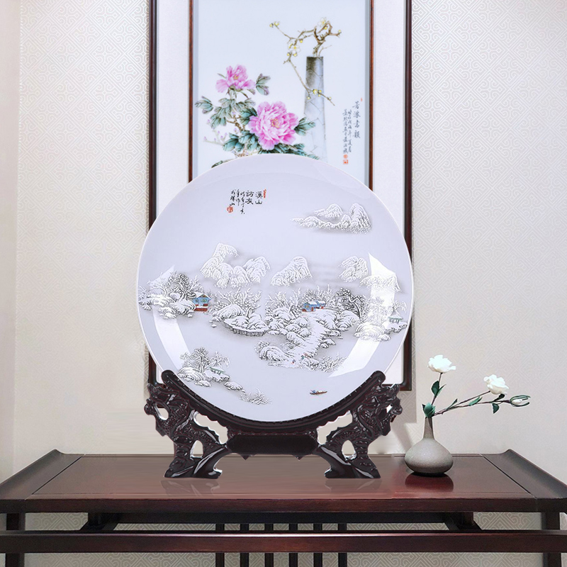 Jingdezhen Ceramics Snow Scenery Painting Decorative Plate Ornament Sitting Plate Modern Home Decoration Craft Gift Ornament Ornament